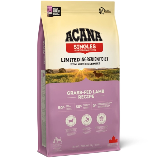 Acana Dog Singles Grass-fed Lamb je krmivo vhodné pro psy všech plemen i věku. Obsahuje maso z novozélandských jehňat. Vhodná i pro pejsky s velmi citlivým zažíváním.