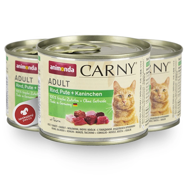 Animonda Carny Adult je chutná masová konzerva, která splňuje přirozené výživové potřeby dospělých koček. Receptura s pečlivě vybranými kousky krůtího a králičího masa a vnitřností poskytuje vysoký obsah kvalitních bílkovin. Navíc obsahuje speciální kombinaci antioxidantů, které pomáhají posilovat imunitní systém. Krmivo neobsahuje barviva ani umělé konzervanty, takže si vaše kočka může vychutnat čistě masovou chuť.