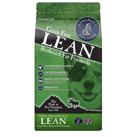 Delikatesní bezobilné krmivo Annamaet pro psy ve všech životních stádiích, které pomáhá udržovat ideální hmotnost a snižovat nadváhu. Díky nízkému obsahu tuků je vhodné pro psy s pankreatitidou.