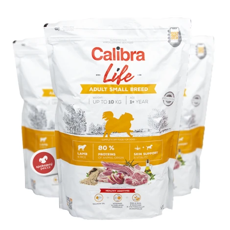 Calibra Dog Life Adult Small Breed Lamb je superprémiová receptura vyvinuta speciálně pro dospělé psy malých plemen. Složení krmiva s obsahem kvalitních jehněčích bílkovin dodává potřebnou energii pro aktivní styl života a pro optimální stav zažívacího ústrojí. Krmivo obsahuje živočišné proteiny, které tvoří 80 % z celkového obsahu bílkovin, a nízký obsah obilovin (pouze rýže).
