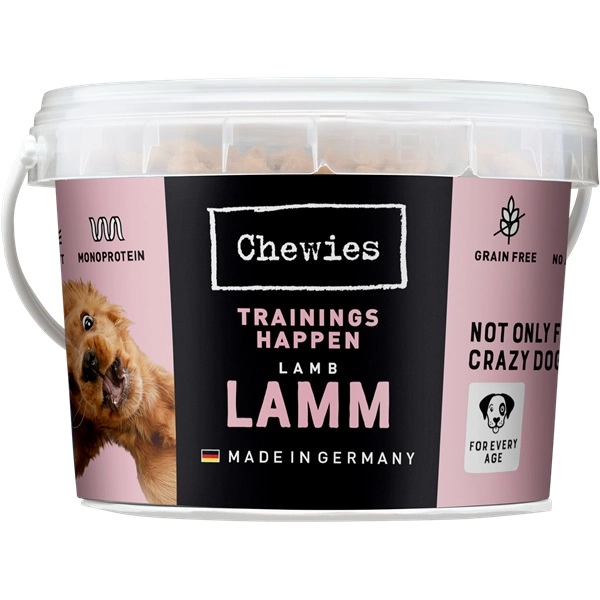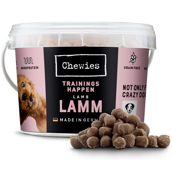 Poloměkké šťavnaté mini kousky pro psy Chewies Trainings-Happen s jehněčím masem jsou tou pravou odměnou pro všechny čtyřnohé šampiony. Tyto monoproteinové pochoutky obsahují kromě masa a vnitřností také brambory, jablko, mrkev, lososový olej a bohatou směs bylinek, která jim dodává neodolatelnou vůni. Díky velikosti cca 1 cm se skvěle hodí na trénink nebo časté odměňování během dne. Jsou snadno stravitelné a vhodné i pro psy s citlivým zažíváním.