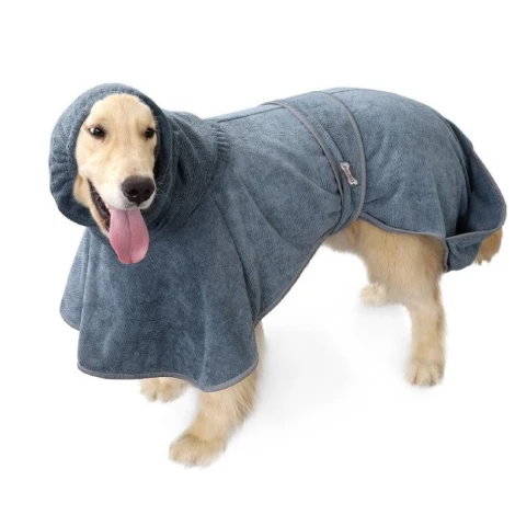 DogLemi Towel je velmi savý župánek z mikrovlákna. Tento praktický pomocník pomůže vašemu psovi rychle vyschnout po koupání, díky propracovanému střihu navíc zabraňuje oklepávání vody v interiéru bytu.