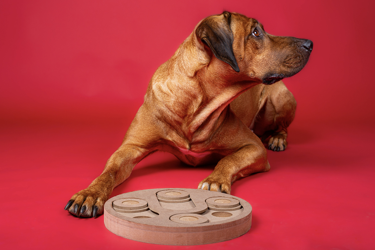 Samotný hlavolam je těžší a stabilní, ale protože je oboustranný a nemá protiskluzové prvky, je potřeba hrát si společně s pejskem. Jinak vám stejně jako nám bude jezdit hlavolam po celém obýváku.