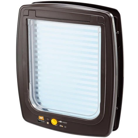 Tichá průchozí dvířka Ferplast Swing 15 pro velké psy. Dvířka lze instalovat do vchodových i vnitřních dveří i zdi. Otočný zámek umožňuje nastavení průchodu do 4 různých variant, dvířka jsou opatřena proti průniku průvanu.
