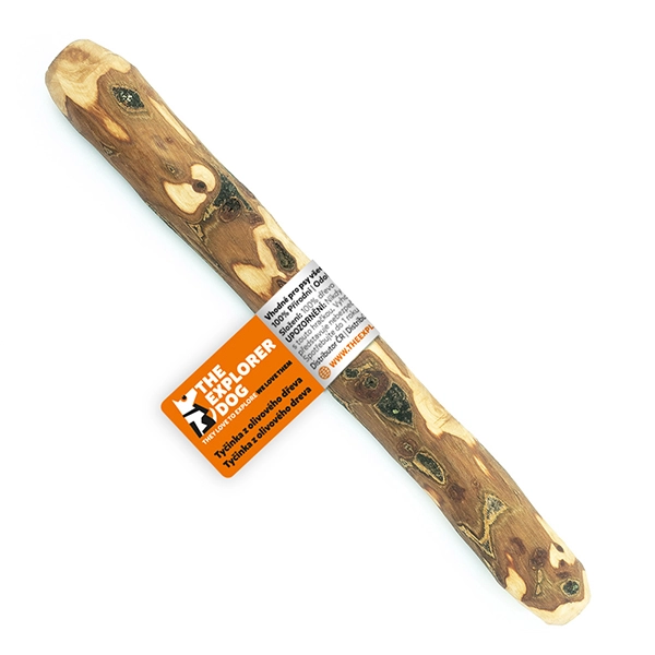 Explorer Dog žvýkací olivové dřevo je čistě přírodní žvýkací hračka, která zabaví pejska na dlouhou dobu. Dřevo se získává z italských olivovníků a vybírá se podle nejlepšího tvaru. Po ručním zpracování se suší a máčí v italském olivovém oleji, který dodává zvláštní přírodní vůni. Neobsahuje žádné umělé přísady, konzervační látky ani aroma. Navíc přispívá k dentální hygieně, a to díky stimulaci slinění a mechanickým působení, které podporuje odstraňování plaku a zubního kamene. U psů vyvolává žvýkání uklidňující účinek.