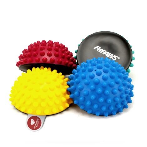 Balanční pomůcka FitPaws ve tvaru půlmíče, známá pod anglickým názvem Halfball slouží k procvičování a posilování se psem. Balení obsahuje 4 ks o průměru 13 cm.