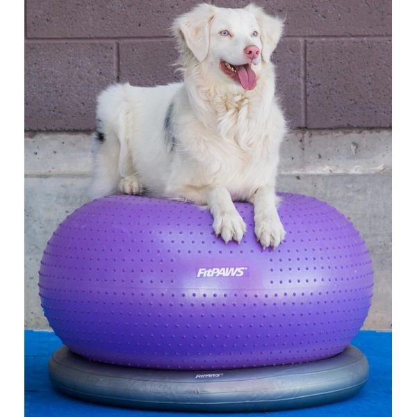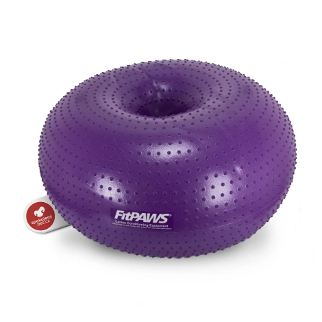 Balanční pomůcka FitPaws ve tvaru donutu. Tento míč je vhodný pro cvičení a posilování všech partií psa. Povrch NEW TRAX zajišťuje lepší stabilitu psa, zabraňuje sklouzávání a poskytuje stimulaci neurosenzorů.