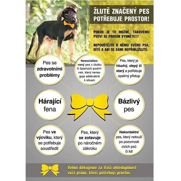Žlutá zářivá vestička Funky dog je určená pro označení jedinců, kteří potřebují prostor, a není vhodné k nim pouštět děti ani psy. Jsou vyrobené v české chráněné dílně D.R.A.K. a jsou dostupné ve více variantách.