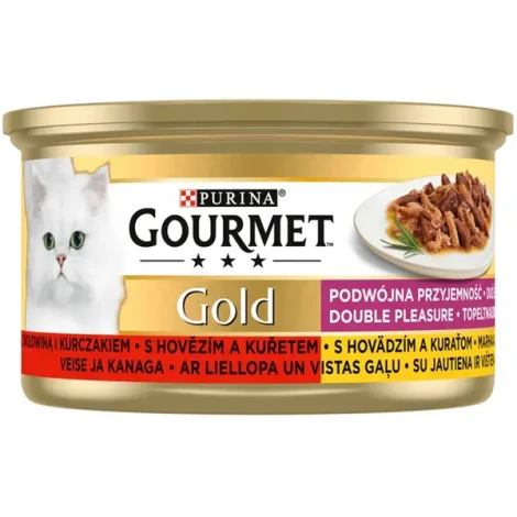 Pro kočky, které si zaslouží něco výjimečného. Delikátní a vydatná konzervička Gourmet Gold pro kočky obsahuje atraktivní a jemnou paštiku z hovězího a kuřecího masa, zcela bez přidaných barviv a umělých konzervantů. Pouze vysoce kvalitní suroviny a vynikající chuť.