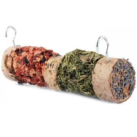 Přírodní pamlsek HamStake ve formě krmítka s bylinkami a zeleninou. Směs chutné zeleniny a bylinek ve větvi z břízy podnítí vaše zvíře k aktivitě. Toto březové krmítko je vhodné pro králíky a všechny hlodavce. Krmítko je kombinací pamlsku a materiálu k broušení hlodavých zubů. Vyjídáním směsi zeleniny a bylin se zvíře zabaví a pochutná si. Samotné krmítko může posloužit jako vítaný materiál k okusu. Krmítko je opatřeno háčky pro zavěšení.