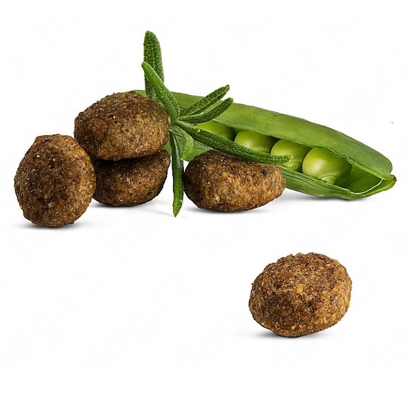 Živočišný protein* (drůbež), lososová moučka (12 %), kukuřičná mouka, rýže, oleje a tuky, kukuřice, brambory*, škvarky, rýžový protein*, hydrolyzovaný protein*, lignocelulóza (1,7 %), cukrovkové řízky*(odcukřené), chlorid draselný, vejce celá sušená, jablečná dřeň* (0,4 %), droždí*, chlorid sodný, mrkev*, mořské řasy*, lněné semeno (0,15 %), čekanka (0,15 % = 0,1 % inulin), juka schidigera* (0,13 %), hrachové vločky (0,1 %), prášek z červené řepy, maso mořských mušlí* (0,05 %), ostropestřec mariánský, droždí* (extrahované, 0,02 % = 0,0032 % MOS), artyčok, pampeliška, zázvor, list břízy, kopřiva, heřmánek, koriandr, rozmarýn (0,008 %), šalvěj, kořen lékořice, tymián (sušené bylinky celkem: 0,16 %); *) sušené.