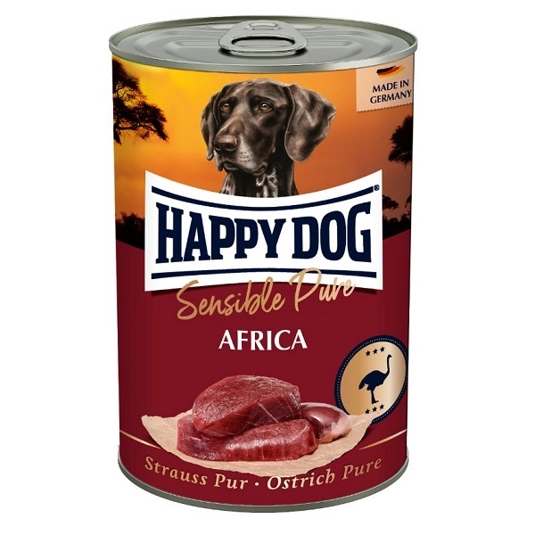 Happy Dog konzerva Strauss Pur Africa je kompletní krmivo pro psy, které obsahuje nejkvalitnější suroviny a přísady od německých farmářů. Konzerva je obohacena o vitamíny a nenachází se v ní rostlinný podíl.