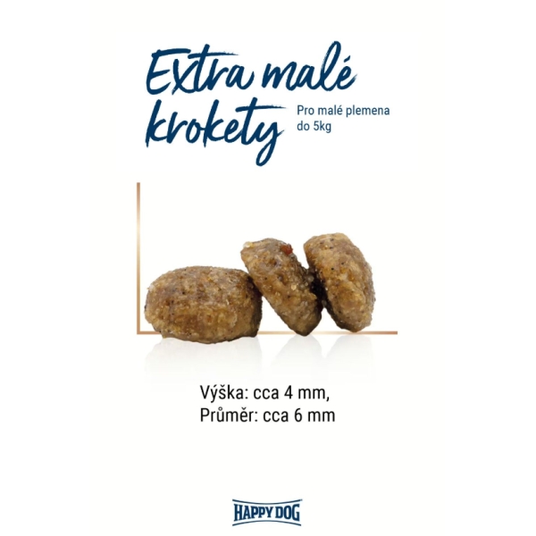 Happy Dog Sensible Mini XS Bali je kompletní krmivo pro dospělé psy malých a velmi malých plemen. Bezlepková a velmi chutná receptura extra malých granulek je optimálně přizpůsobena malým zoubkům velmi malých psů do 5 kg dospělé hmotnosti.