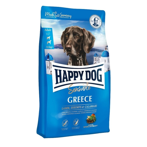 Happy Dog Sensible Greece ukrývá poklady řecké kuchyně. Kalamáry, krevetky a jehněčí maso jsou delikatesní, lehce stravitelné a vyjímečné zdroje bílkovin. Na těch krmivo Greece stojí. Doplněné jsou paprikou, olivovými listy, rajčaty nebo cuketou.