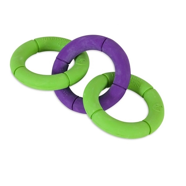 Odolná hračka na přetahování a aportování - to je nezničitelný gumový řetěz pro psy JW Invincible Chains. Řetěz zaujme vašeho psa gumovou texturou, jejíž žvýkání si zamiluje. Články jsou celistvé, nemají žádné lepené švy.