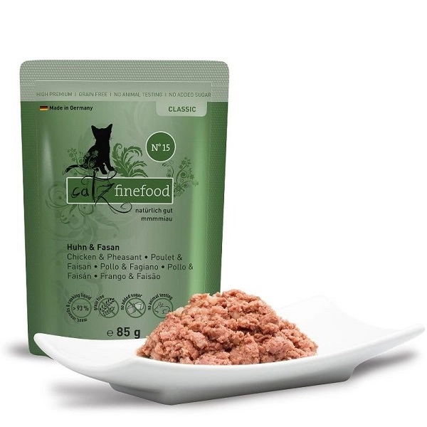 Lahodná kapsička pro kočky, která obsahuje vysoký podíl kuřecího a bažantího masa, zdraví prospěšnou řeřichu a smetánku lékařskou.