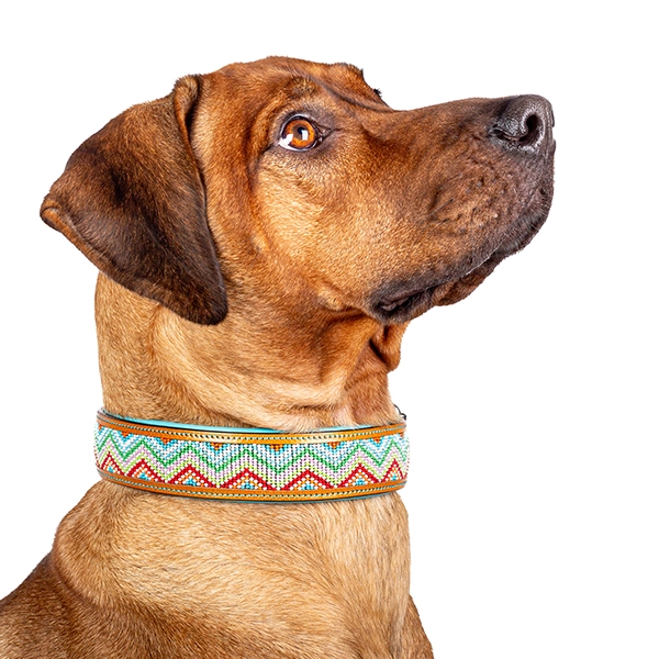 Stylový a moderní kožený obojek Kay-line Zictac Türkis promění vašeho chlupáče v pravého elegána. Tento ručně šitý kousek je vyroben z kvalitních materiálů a jeho jedinečný design s korálkovým vzorem vás zaujme na první pohled. Nádherný doplněk, který nikdy nevyjde z módy.