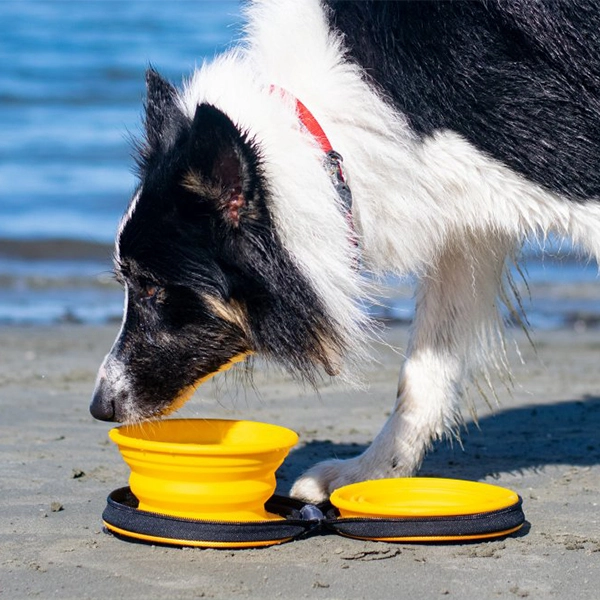 Praktické cestovní misky pro psy Kiwi Walker Slowfeeder zaujmou svým vzhledem i promyšleným designem. Dvě skládací silikonové misky o objemu 350 ml jsou ideální na krmivo i vodu. Jedna z nich navíc díky vystouplým prvkům zpomaluje hltání a přispívá ke klidnějšímu trávení.