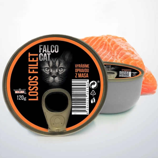 odstranitLuxusní, ručně plněná konzerva Falco Cat pro malé požitkáře. Obsahuje pouze celé a vybrané filety masa, konkrétně z lososů. Zcela přírodní produkt bez rýže a zeleniny. Místem vzniku konzerv Falco je Česká republika.