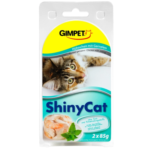 Velice chutná konzervička SHINY CAT s vysokým obsahem kvalitního kuřecího masa a krevet. Suroviny jsou uvařeny velice šetrným způsobem, který zachová chuť, vůni i živiny.