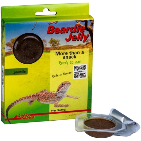 Doplňkové krmivo ve formě želé Lucky Reptile Beardie Jelly Juvenile, speciálně vyvinuté pro rostoucí agamy vousaté. Velmi kvalitní složení, snadné dávkování a vyvážená receptura s velmi širokou škálou surovin pro zdravé a vyvážené krmení. Několik druhů hmyzu poslouží jako zdroj bílkovin, rostlinné složky jako zásoba přírodních vitamínů, minerálů a cenné vlákniny. Krmivo obsahuje extra porci vápníku, dalších minerálů a stopových prvků. Díky vysoce kvalitnímu hmyzímu oleji je krmivo obzvláště atraktivní.