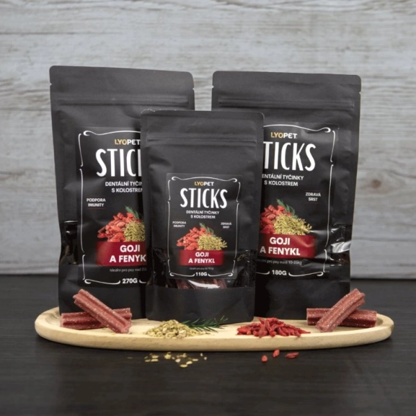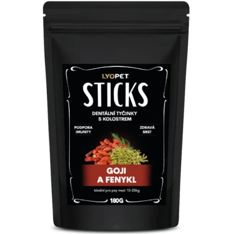 Pro zdravý chrup a svěží dech vašeho chlupáče vyzkoušejte hypoalergenní dentální tyčinky s goji a fenyklem Lyopet Dental Sticks Goji & Fennel Mini. Lahodná přírodní odměnka pro malé psy, která bojuje proti zubnímu plaku a předchází vzniku zubního kamene.