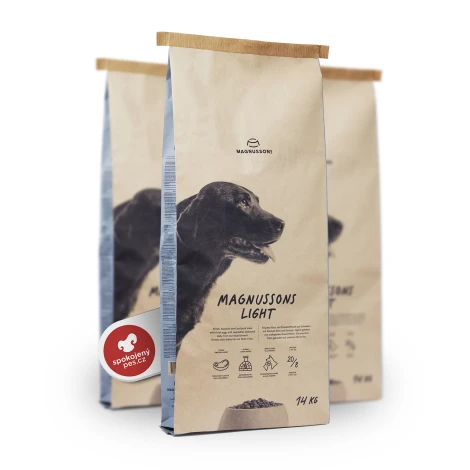 odstranitKrmivo Magnusson Meat&Biscuit Light je vhodné pro psy s nadváhou. Granule jsou vyrobeny z čerstvého masa a mají snížený obsah energie.