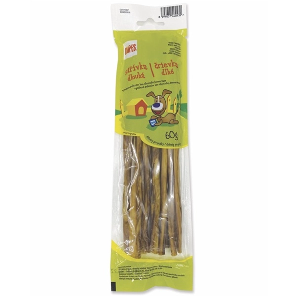 Vepřová střívka nejsou šlemovaná a suší se velmi šetrně, aby zůstala vláčná a aby si zachovala mikroflóru, která má blahodárné účinky na zažívací systém psů. Střívka jsou opravdu velice chutná!