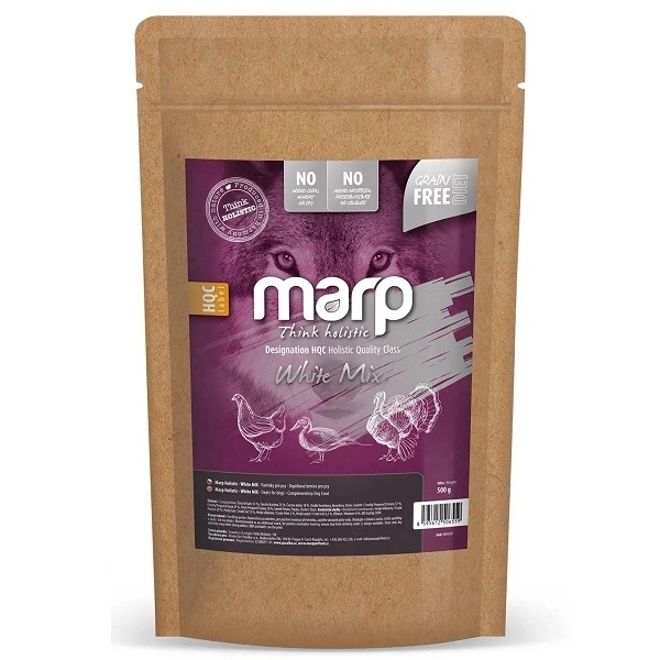 Chutný pamlsek pro psy Marp White Fish Mix s obsahem čerstvého masa z kuřete, kachny a krůty. Tento křupavý pamlsek bez obilovin a konzervantů je vhodný při výcviku, nebo jen tak pro radost pejska.