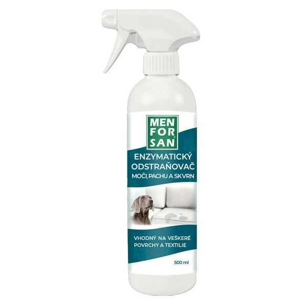 Menforsan enzymatický odstraňovač moči, pachů a skvrn je velmi účinný neutralizér zápachu zůstávajícího po psech a kočkách v rozprašovači. Ihned odstraní veškeré zapáchající skvrny od tekutin domácích mazlíčků.