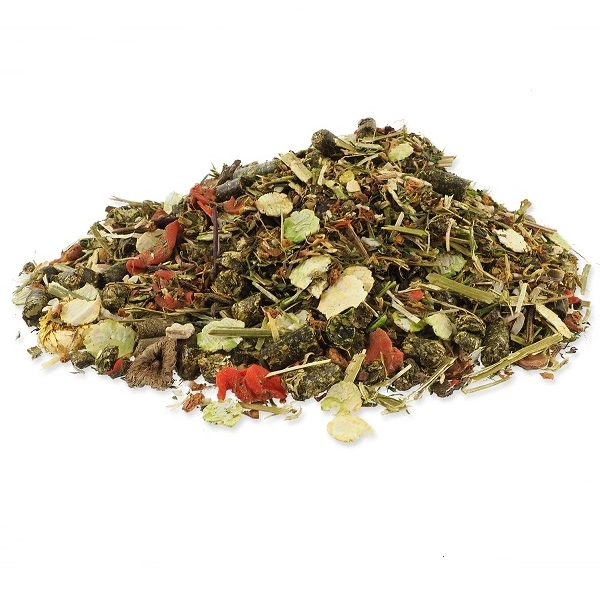 Sušená vegetace rostoucí na trvalých pastvinách podhůří Alp, hrachové vločky 11,4 %, zelenina (sušená mrkev, sušená petržel 2,1 %, sušený pastinák, sušená červená řepa), byliny (sušené květy měsíčku lékařského 2 %, sušené kopřivy, sušená máta peprná 1,1 %, sušená meduňka, sušené pampelišky, sušený heřmánek), sušená jablka 4 %, vločky z bobu obecného 3,3 %, sušená vojtěška, lněná semena, semena černého kmínu, semena fenyklu.
