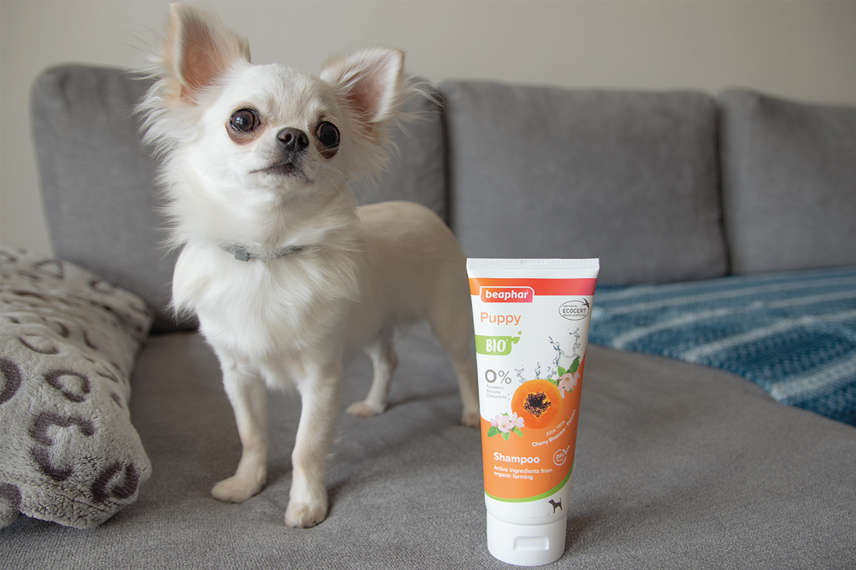 Jasně, to hezky po papáje voněl šampon Beaphar BIO, který je vyrobený speciálně právě pro srst štěňátek. Jeho předností je neutrální pH, takže je vhodný pro citlivou kůži štěňátek, a navíc obsahuje gel z Aloe Vera vyprodukovaný v ekologickém zemědělství. Skvělé rovněž je, že v něm najdete 0 % parabenů, silikonů, barviv a alkoholu... zkrátka kvalitní produktík pro ty naše psí juniory.