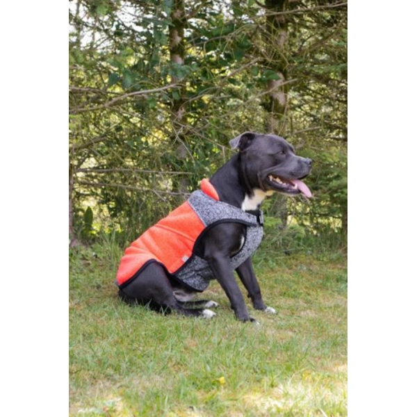 Hřejivý svetr pro psa Frankie XL od české značky Samohýl Exclusive z kvalitní úpletoviny s měkkou flanelflísovou podšívkou pejska příjemně zahřeje i v největších mrazech bez deště. Střih oblečku neomezuje v pohybu, chrání všechny důležité partie, a díky pružnému lemu na okrajích a gumičkám na zadní nohy a ocásek výborně drží na těle psa, nepodfukuje a neuniká zpod něj teplo. Dvojmístné zapínání na suchý zip usnadní nasazování a přizpůsobení oblečku psímu tělíčku. Obvod kolem krku nastavíte oboustranným zapínáním pod krkem. Kolem bříška upevníte obleček zapnutím břišního dílu zleva i zprava pomocí suchých zipů na bocích oblečku.