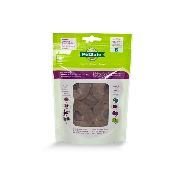 Balení náhradních pamlsků do hraček Busy Buddy ve velikosti M. Pamlsky zabaví pejska a odvedou jeho pozornost od okousávání nábytku. Jsou vyrobeny ze stlačené přírodní kůže.