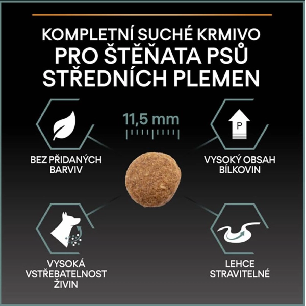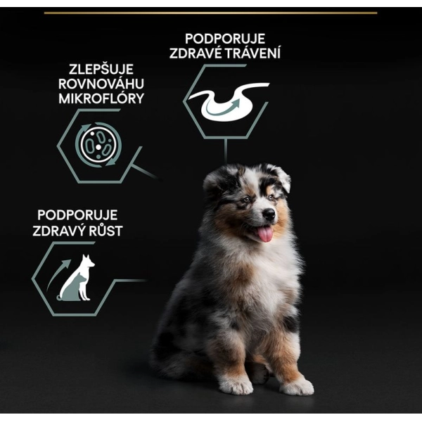 AKCE: Sleva 15 % s kódem PROPLAN15 do 30.11.2025. Kompletní krmivo Pro Plan pro štěňata středních plemen s citlivým zažíváním. Hlavní surovinou je kvalitní jehněčí maso, které je velice snadno stravitelné. Granule nedráždí trávicí trakt, zlepšují rovnováhu střevní mikroflóry a podporují správné vyprazdňování.