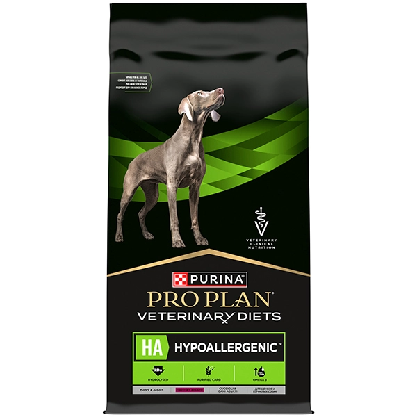 Pro Plan VD Canine HA Hypoallergenic je kompletní veterinární krmivo určené k diagnostice a managementu intolerance a alergie na krmivo. Vhodné pro psy všech věkových kategorií.