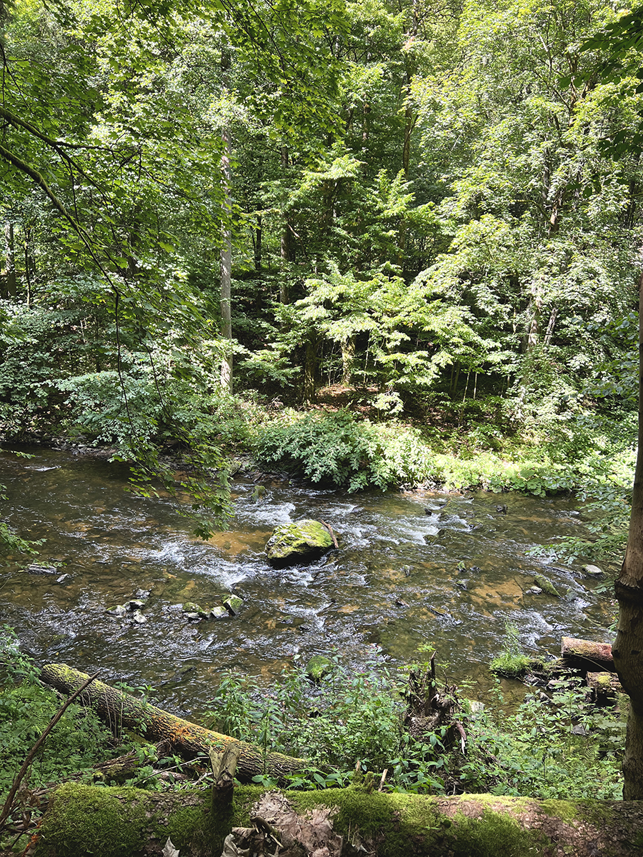 Určitě si nenechte ujít pohled na soutok řeky Jizery a Kamenice, který se vám naskytne z pohledu železničního mostu - hlavně pozor na vlaky! Najdete ho hnedka u hotelu Spálov. Jakmile se pokocháte, směr je jasný 😊 Chvíli se ale bohužel protlapkáte přes silnici, po níž stezka vede zhruba kiláček a půl. Takže tady zase dejte pozor na projíždějící auta. Pak se ale konečně dostanete na rozcestí Ústí Vošmendy a začne jiná paráda skrz lesní cesty. Tuto část cesty už si s chlupáčem hezky užijete. Jen na některých úsecích si dejte větší pozor, místy jsou velmi úzké či skalnaté, tudíž třeba s kočárkem nebo na kole bych sem nejezdila.