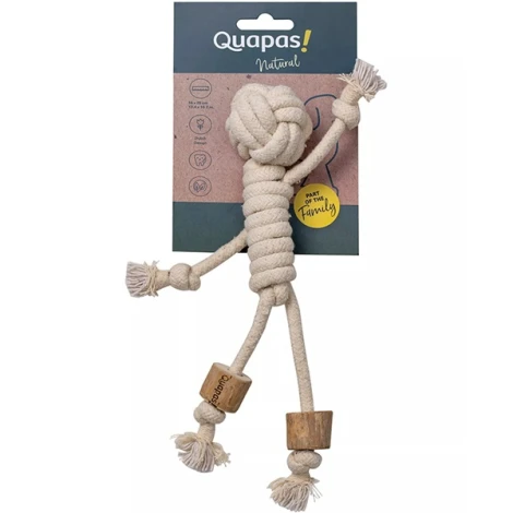 Hračka pro psy z kávového dřeva Quapas! Pupa. 100% přírodní kávové dřevo a bavlněné silné lano - skvělá kombinace pro dlouhotrvající radost ze žvýkání. Kávové dřevo je bezpečné na okus a neobsahuje žádná umělá aditiva. Žvýkání a okusování kávového dřeva podporuje čisté zoubky a zároveň pomáhá snižovat stres a úzkost. Perfektní volba pro psy, která vydrží déle než běžné hračky.