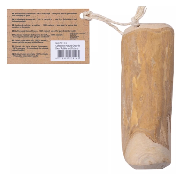Quapas! kávové dřevo pro králíky a hlodavce - přírodní, bez třísek a naprosto bezpečné pro žvýkání. Okusování kávového dřeva podporuje přirozené obrušování zubů a představuje udržitelnou alternativu k běžným žvýkacím hračkám.