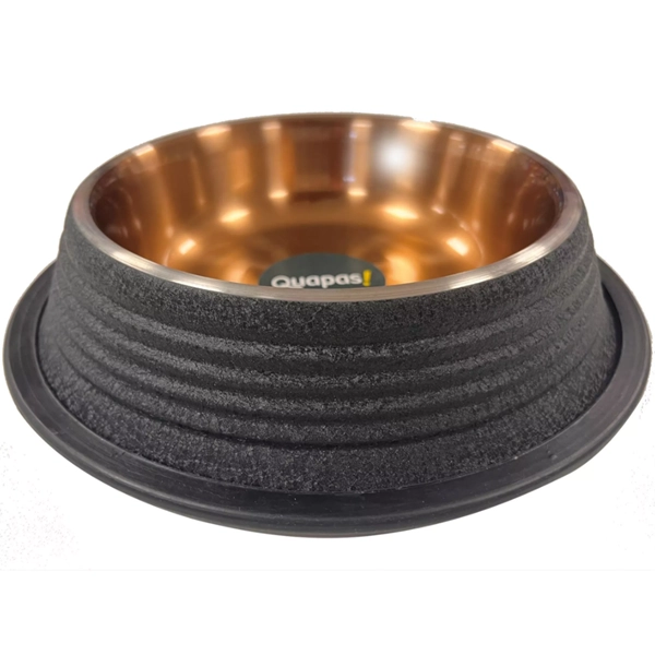 Miska, kterou si oblíbíte vy i váš pes. Nerezová miska s protiskluzem Quapas! Black Copper snoubí stylový design s praktickým využitím. Atraktivní provedení s měděným nádechem a protiskluzovou základnou potěší při každém krmení. Kónický tvar misky navíc zabrání rozlévání.