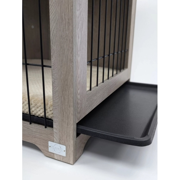 Posuvná dvířka na přední straně přináší elegantní, ale také prostorově úsporné řešení. Měkoučká matrace uvnitř zajistí pejskovi pohodlné místečko pro odpočinek. Snímatelný potah matrace a výsuvná vanička na nečistoty zjednoduší úklid a udrží pelíšek vašeho mazlíčka čistý a svěží.