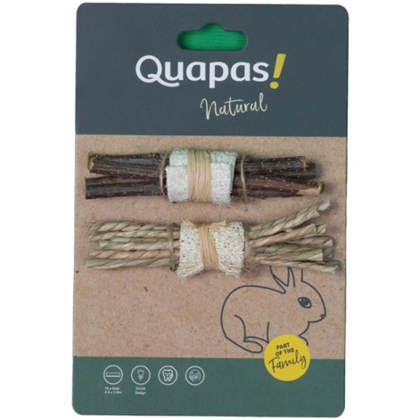 Zábavný způsob, jak obrousit zoubky, je na světě! Přírodní tyčinky na okusování Quapas! Natural Treat pro králíky, křečky a další hlodavce. Okusování tyčinek ze 100% přírodních materiálů pomůže nejen zahnat nudu, ale také udržet správnou délku zubů, která je pro spokojený život našich malých mazlíčků naprosto nezbytná.