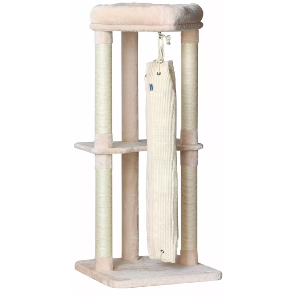 Quapas! škrabadlo pro kočky s odpočívadlem a závěsným škrabacím vakem. Touhu po obroušených drápcích uspokojí hned několik pevných sloupků potažených sisalem, zatímco závěsný vak slibuje extra porci dosud neobjevené zábavy. Měkoučký pelíšek v horní části se postará o sladký odpočinek a dostatek sil na další den plný hraní a skotačení.