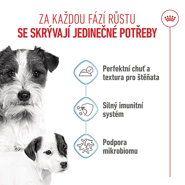 Kompletní vlhké krmivo Royal Canin pro feny (březost a kojení) a její štěňata (od odstavu do 2 měsíců). Pěnová konzistence umožňuje velmi snadný příjem tohoto krmiva.