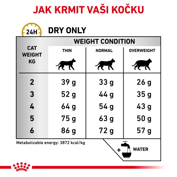 Veterinární dieta Royal Canin VD Feline Urinary S/O má schopnost okyselovat moč a snížený obsah hořčíku ho činí vhodným pro rozpuštění struvitových kamenů a omezení jejich opakované tvorby. Složení také napomáhá při léčbě onemocnění dolního močového ústrojí.