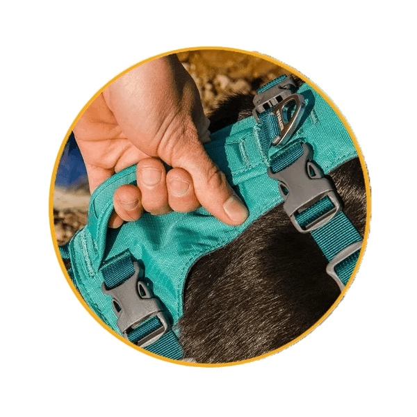 Pohodlný postroj pro psy Ruffwear Flagline Sage Green. Díky ultralehké konstrukci, nulovému vyztužení a optimálnímu přizpůsobení váš pes ani nepozná, že na sobě nějaký postroj má. Ideální pro celodenní nošení, od radostného toulání lesem až po zdolávání terénních nástrah a nešvarů dobrodružných cestiček. Pevné madlo na zádech umožňuje bezpečné přidržení nebo zvednutí v situacích, které mohou být pro psa náročné.