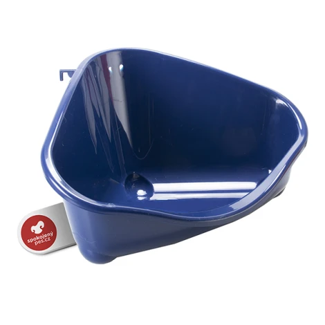 Velká rohová toaletka pro hlodavce a králíky se zaobleným, vpředu sníženým okrajem. Lze přichytit ke kleci nebo připevnit pomocí provléknutého drátku. Toaleta se snadno čistí, a díky ní se zvířátko naučí čistotnosti.