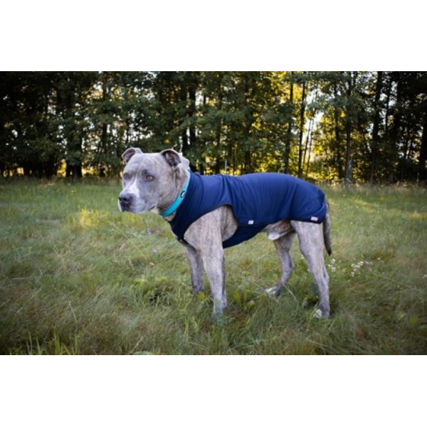 Anatomicky navržený střih oblečku Alpine neomezuje v pohybu, chrání všechny důležité partie, a díky pružnému lemu na okrajích a gumičkám na zadní nohy a ocásek výborně drží na těle psa, nepodfukuje a neuniká zpod něj teplo. Obleček se snadno a rychle nasazuje pomocí zapínání na suchý zip (jeden pod krkem, dva na bocích).