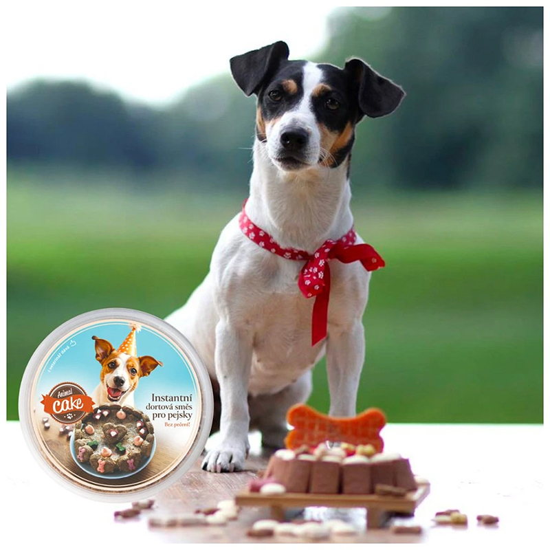 Kalendář vám hlásí, že bude mít chlupáč narozeniny? Anebo slavíte jinou psí událost, která si zaslouží pořádný psí dost? Směs na dort Animal Cake je skvělý způsob, jak pejskovi dopřát něco výjimečného bez složitého pečení. Stačí přidat horkou vodu, nechat ztuhnout a dozdobit podle mlsného jazýčku zrovna vašeho pejska. To bude, panečku, psí oslava... jak má být!