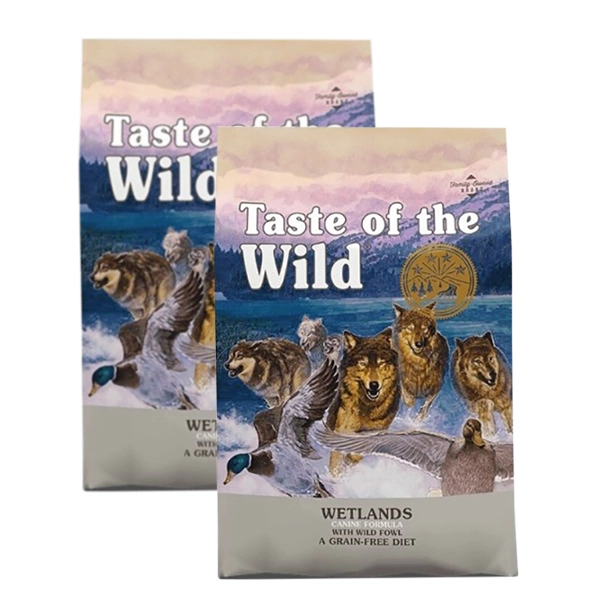 Taste of the Wild Wetlands Wild Fowl je superprémiové krmivo pro dospělé psy po vzoru přirozené stravy šelem. Základ granulí tvoří čerstvé a pečené maso z kachny a krocana, dále pak jedinečné maso z křepelky. Výhodný set 2x 12,2 kg.